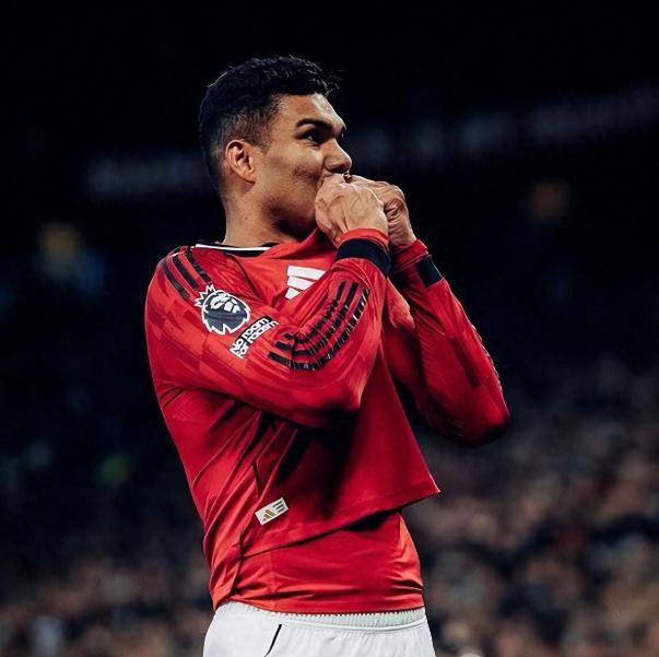 然而,机警的巴西后腰卡塞米罗如同幽灵般插上,在门前不到两米的地方,轻松将反弹出来的皮球顶进了空门。 进球后的“胖虎”激动地冲向角旗区,深情亲吻胸前的曼联队徽,这个画面点燃了整个老特拉福德。